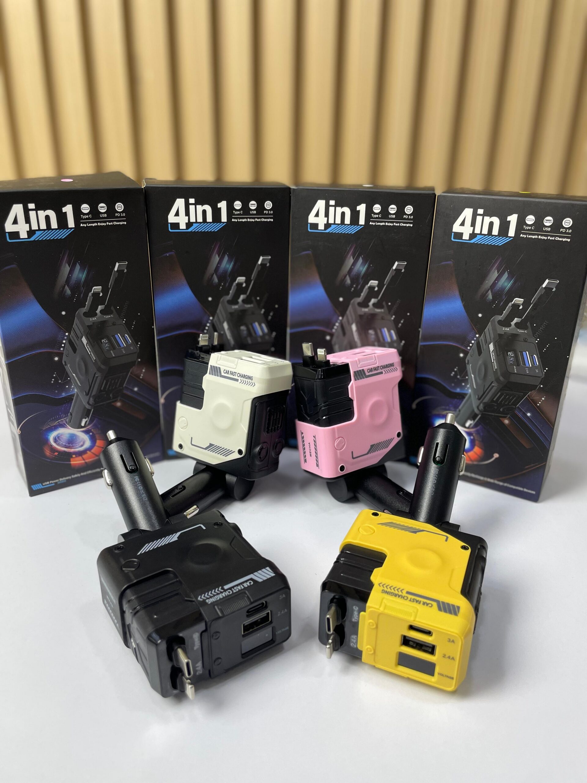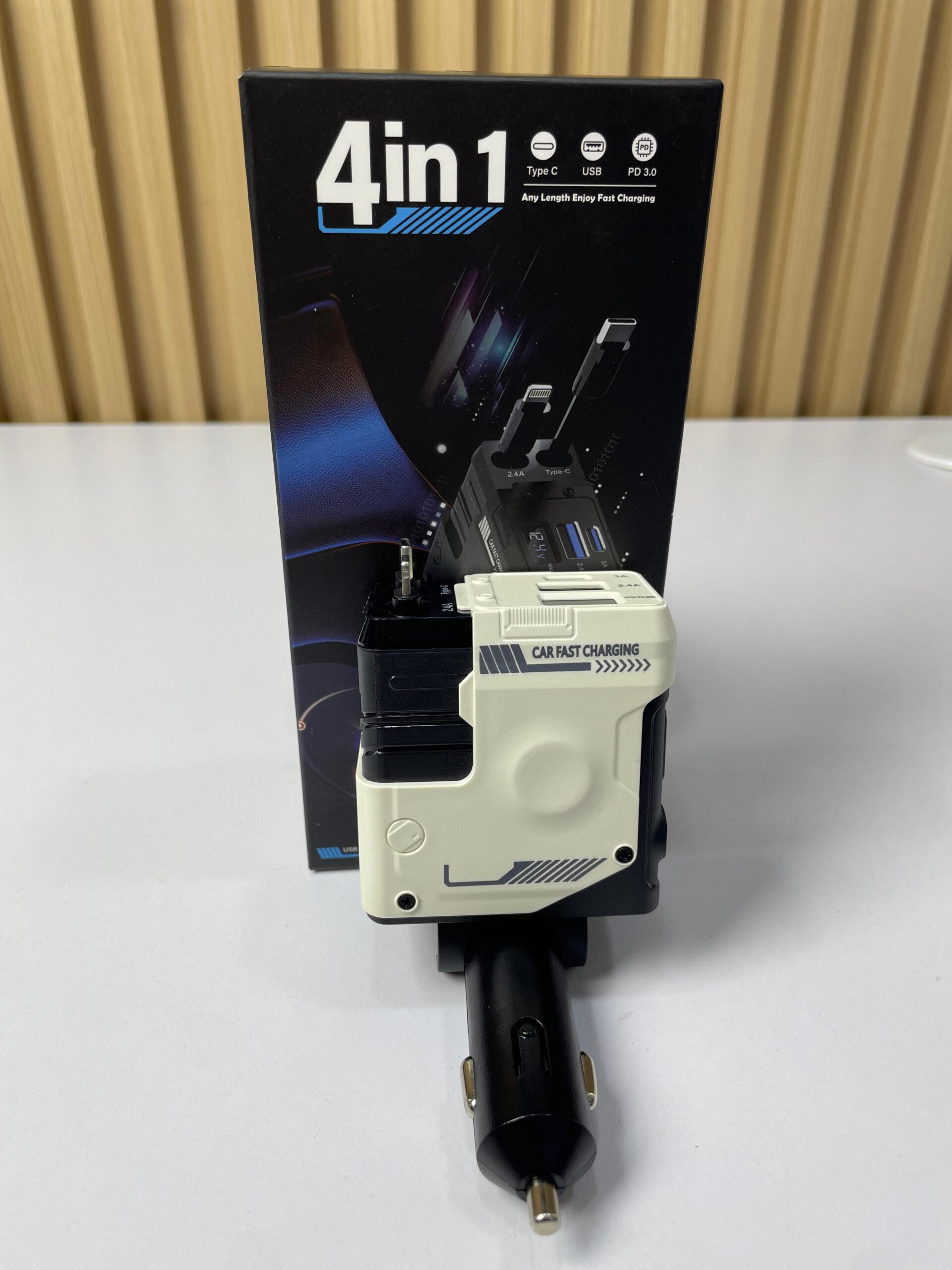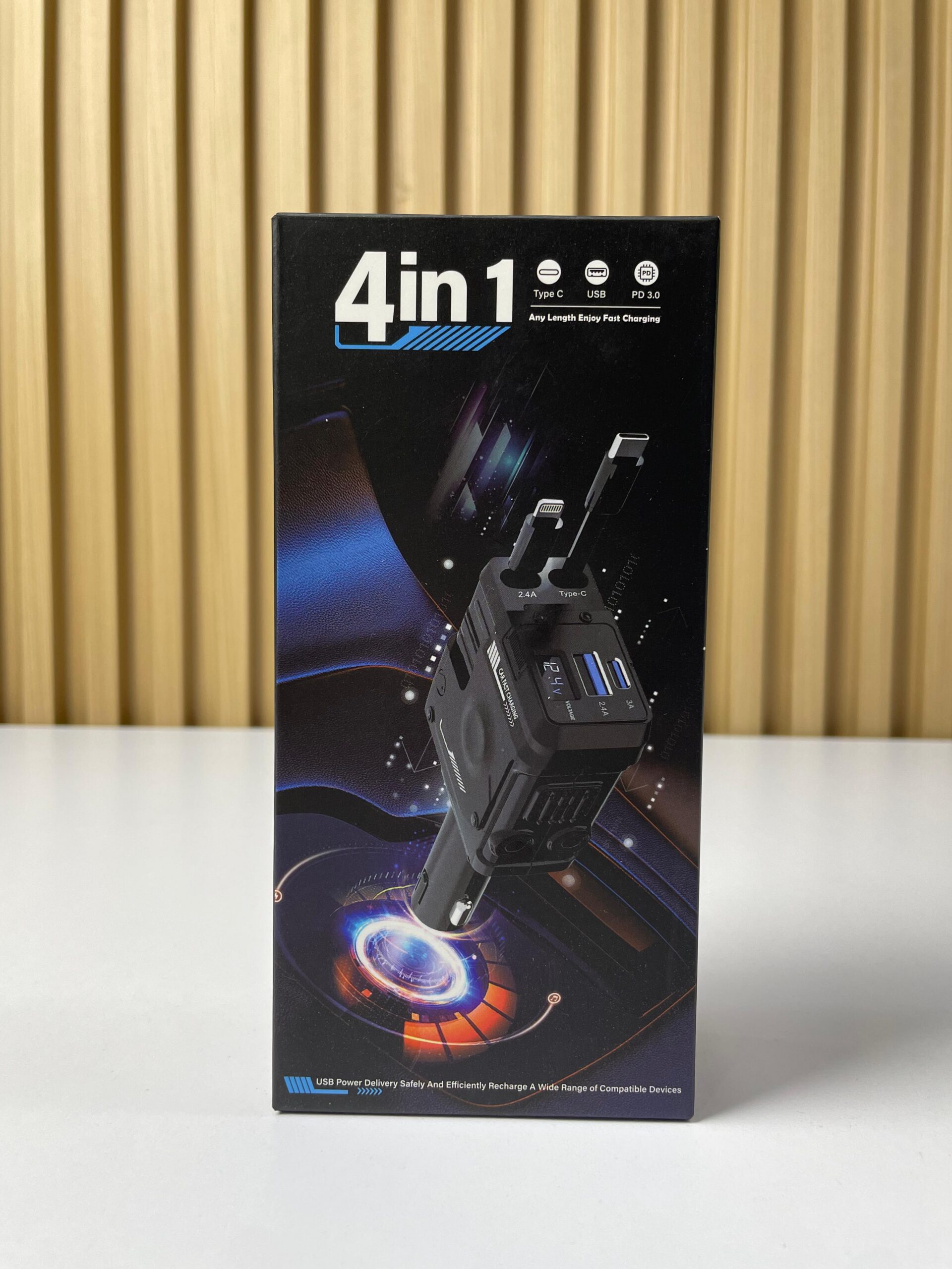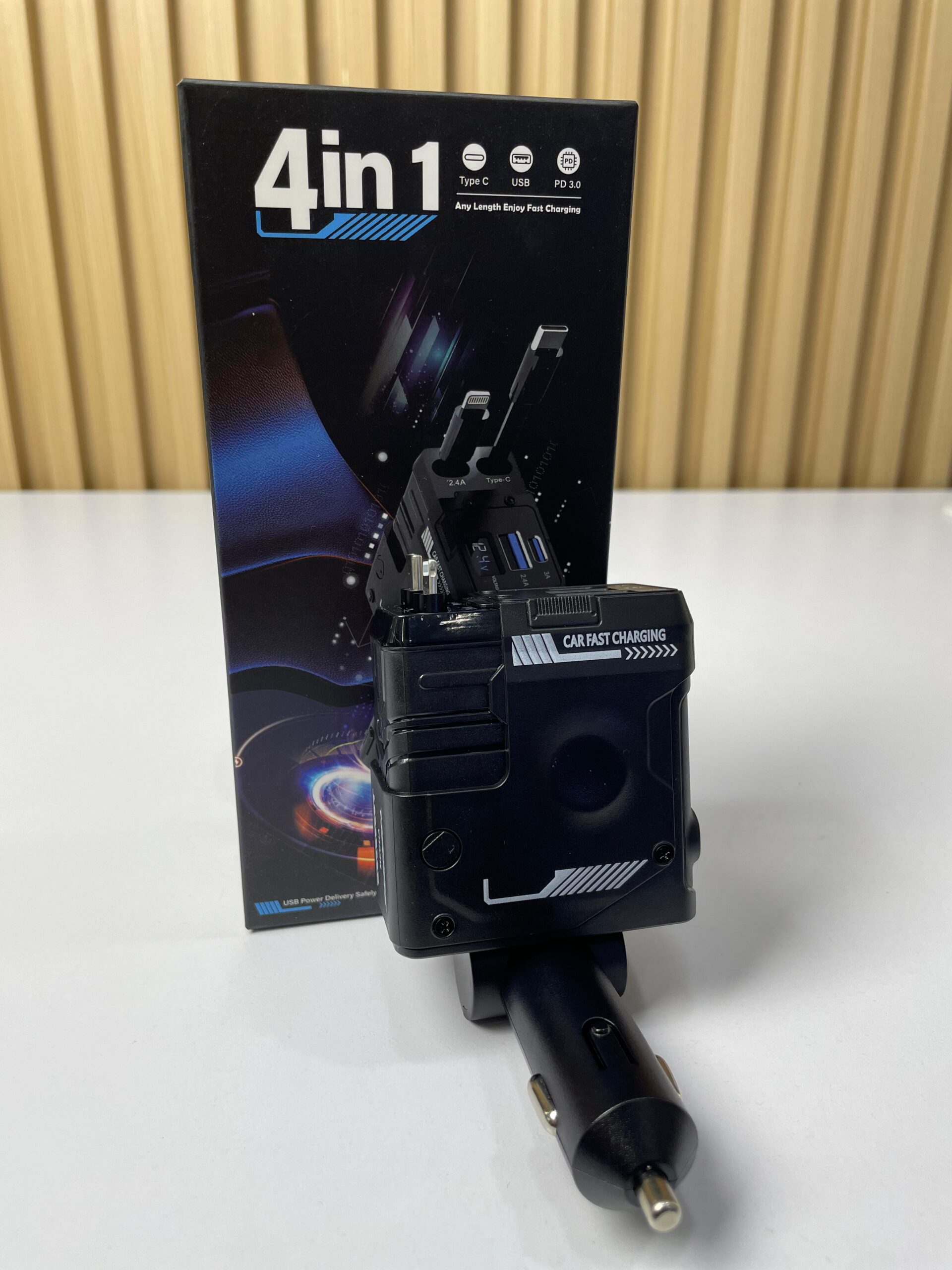 El Cargador de Carro 4 en 1 Dual Retráctil 66W es la solución definitiva para mantener todos tus dispositivos cargados mientras viajas. Su diseño ajustable y multifuncional combina potencia, compatibilidad y comodidad, ideal para conductores que buscan rendimiento y organización.