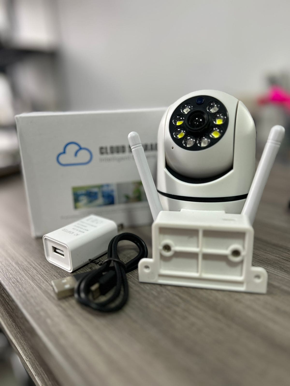 Equipada con doble antena para una señal más estable y una lente de alta resolución, capta cada detalle con claridad. Su función de rotación panorámica PTZ (Pan-Tilt-Zoom) permite cubrir todos los ángulos, asegurando que ningún rincón quede fuera de vista.